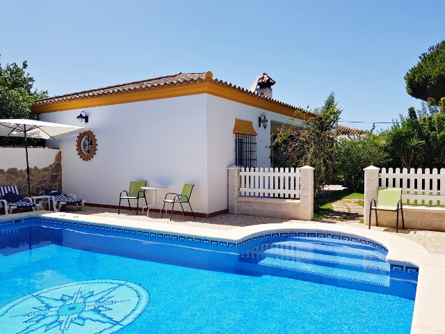 Ausgezeichneter Bungalow in der beliebten Wohngegend von Pinar de los Guisos / La Rana Verde. Geschaefte, Restaurants, Supermaerkte und Tapas Bars befinden sich in unmittelbarer Naehe und der schoene Strand von La Barrosa sowie der Sporthafen im ehemaligen Fischerdorf Sancti Petri sind nur 5 Autominuten entfernt.