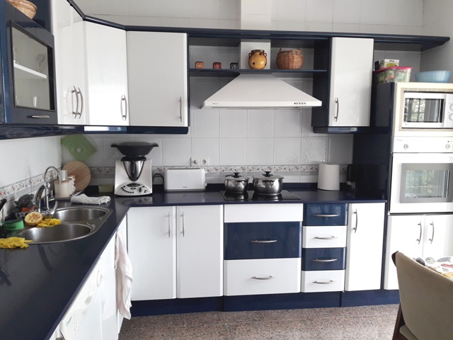 - la espaciosa y moderna cocina completamente equipada, desde la cual hay acceso a una terraza cubierta en la parte delantera de la casa y se disfruta de la vista al hermoso jardÃÂn